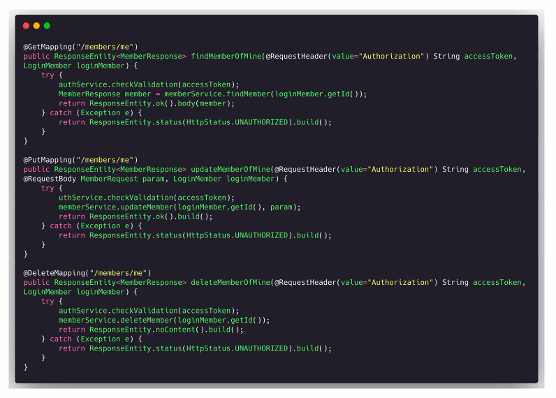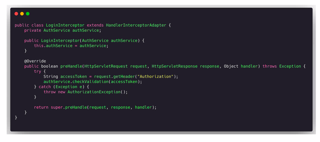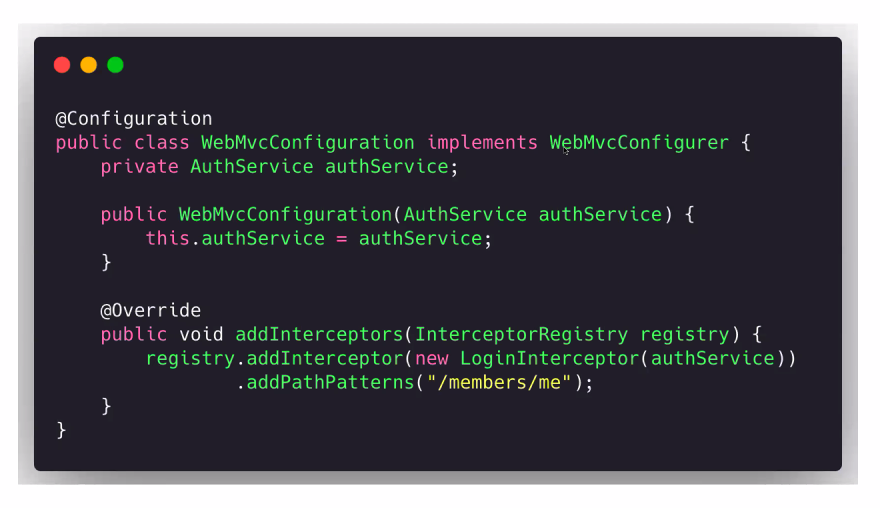 이렇게 인증을 하는데 중복되는 로직이 있을 경우, 중복을 줄이기 위해 Interceptor 사용 가능