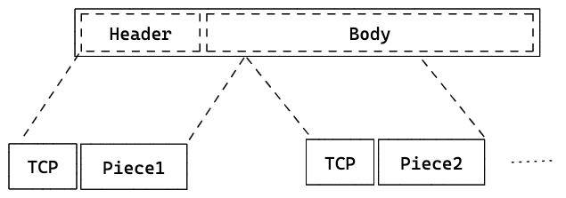 분할한 조각에 TCP 헤더를 부과하고, 나중에 IP 헤더도 부과하여 송신 동작을 실행