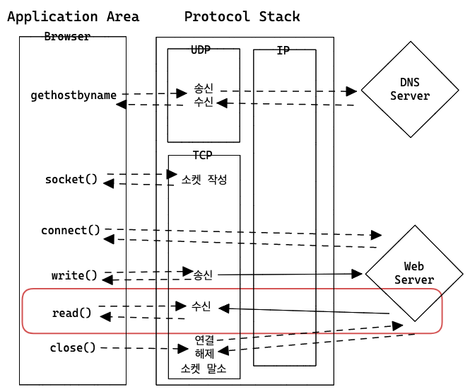 브라우저는 서버에서 돌아오는 응답 메세지를 받기 위해 read()를 호출한다.