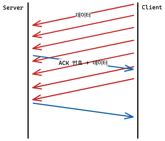 따라서 한 개의 패킷을 보낸 후 ACK 번호를 기다리지 않고 차례대로 연속해서 복수의 패킷을 보내는 방법을 사용한다.