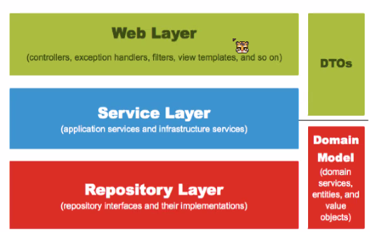 Presentation은 웹이나 콘솔 아무거나 가능 데이터 접근도 여러가지 가 가능하다 변하지 않는 도메인을 보호하기 위해, 책임을 나누기 위해 계층화를 한다.